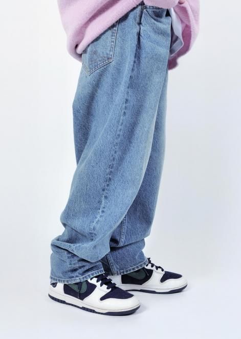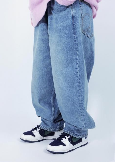 最大の特徴は、深めに設定した股上と、腰からももにかけてのリラックス感あるワイドシルエット。