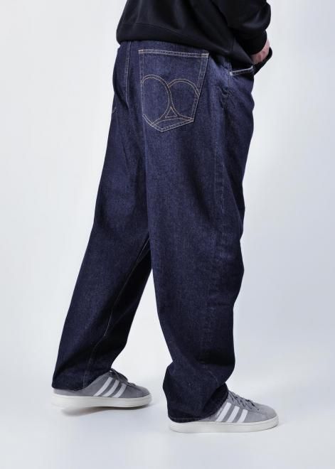 最大の特徴は、深めに設定した股上と、腰からももにかけてのリラックス感あるワイドシルエット。