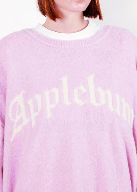 オールドイングリッシュフォントで【APPLEBUM】のロゴをジャガード編みで施したニットセーター。