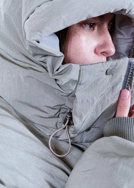 フードを被った状態、ファスナーを上まで閉めた状態、そしてファスナーを開けた状態のそれぞれで全く異なる印象を与え、様々なスタイリングを楽しめます。