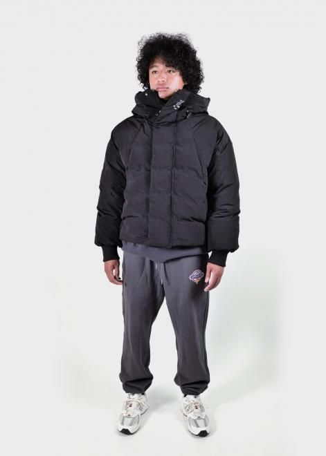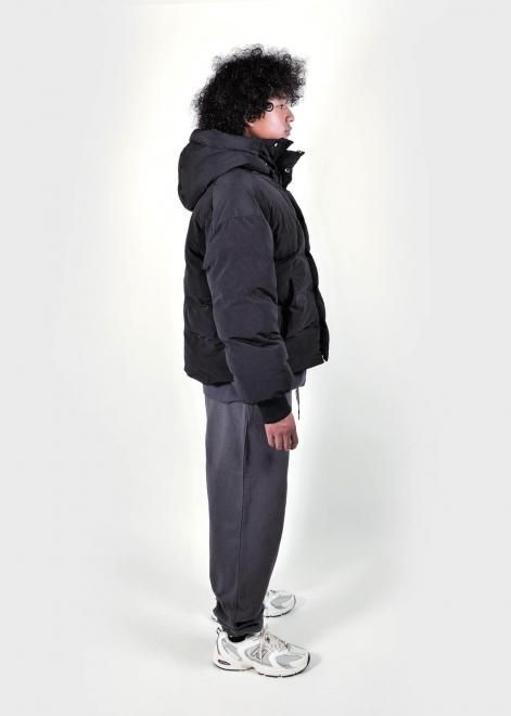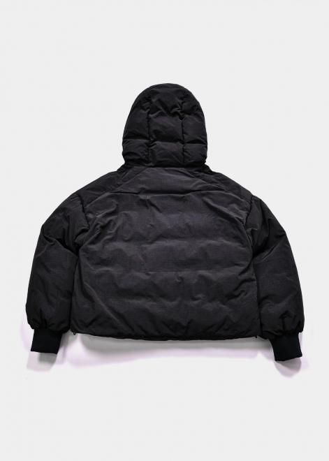 特徴的なボリューム感あるフードと首元のデザインが魅力のショート丈コットンジャケット。