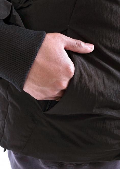 フードを被った状態、ファスナーを上まで閉めた状態、そしてファスナーを開けた状態のそれぞれで全く異なる印象を与え、様々なスタイリングを楽しめます。