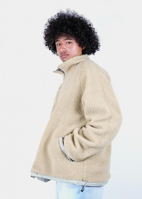 ボアフリースとマットな質感のポリエステル地を使用したリバーシブルジャケット。