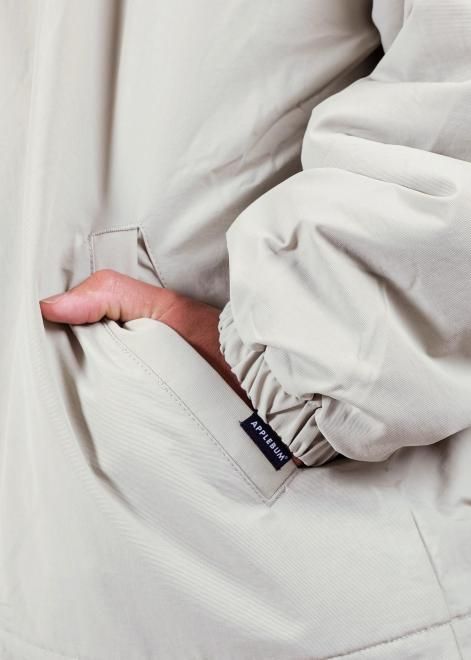 ボアフリース面は暖かみがあり、ナイロンツイル面はスムースでクリーンな印象を与えます。