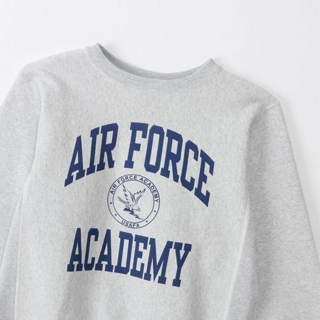 胸のグラフィックはアメリカ合衆国の空軍士官学校(United States Air Force Academy)をモチーフにしたもので、「AIR FORCE ACADEMY(エア フォース アカデミー)」と校章を組み合わせた単色プリントと、2色で「USAFA ATHLETICS(USAFA アスレチックス)」を2段にレイアウトした2色プリントの2種類。
