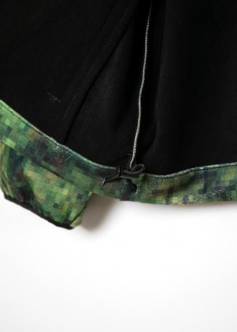 raidback fabricを象徴するピクセルカモ柄を全面に落とし込み、ゆったりとしたシルエットで、裾のドローコードでスタイルのアレンジ自在。